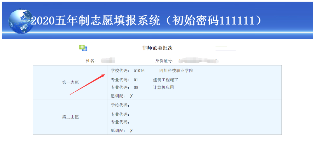 1、为了保障被四川科技职业学院录取,考生在非师范志愿的第一学校志愿填报我院五年制招生代码:51016,选择专业代号:如01、02、03、04,分别代表不同专业;